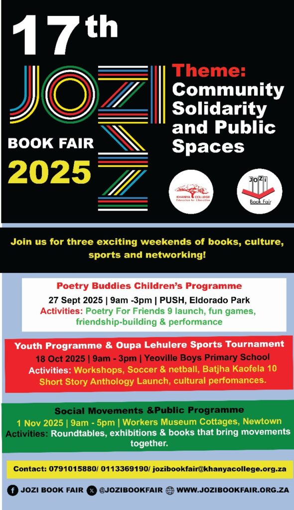 Bathekgi Ba Khanya (which means ‘Khanya Supporters’) is a programme of Khanya College and is aimed at combining resource mobilisation for the various programmes of Khanya College with expanding the access of Khanya’s various constituencies to affordable books, music and other cultural programmes and products. Members of Bathekgi will enjoy a variety of benefits including discounted books, music and other products as well as invitations to special events hosted by the Jozi Book Fair and Khanya College.